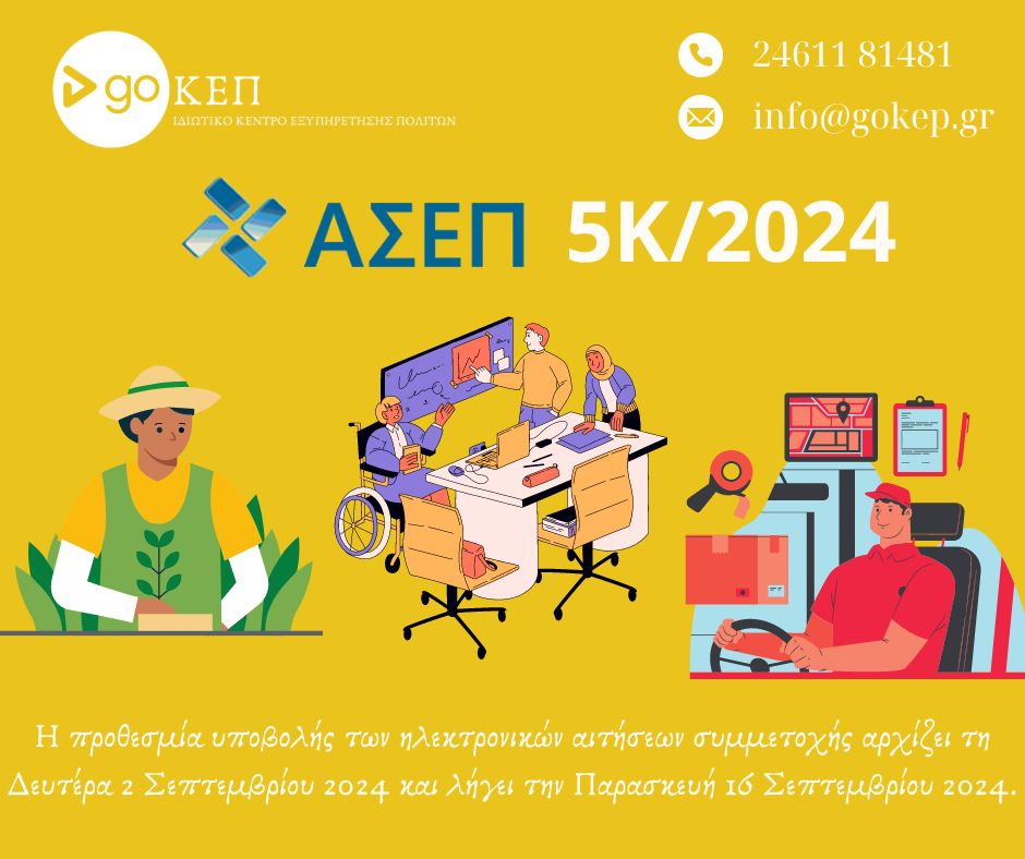 🆕Δημοσιεύτηκε στην Εφημερίδα της Κυβερνήσεως η προκήρυξη 5Κ/2024 του ΑΣΕΠ, που αφορά την πλήρωση με σειρά προτεραιότητας 138 θέσεων μόνιμου προσωπικού και προσωπικού με σχέση εργασίας ιδιωτικού δικαίου αορίστου χρόνου σε υπουργεία, Ανεξάρτητες Αρχές, Επιμελητήρια και άλλους φορείς τους δημοσίου.