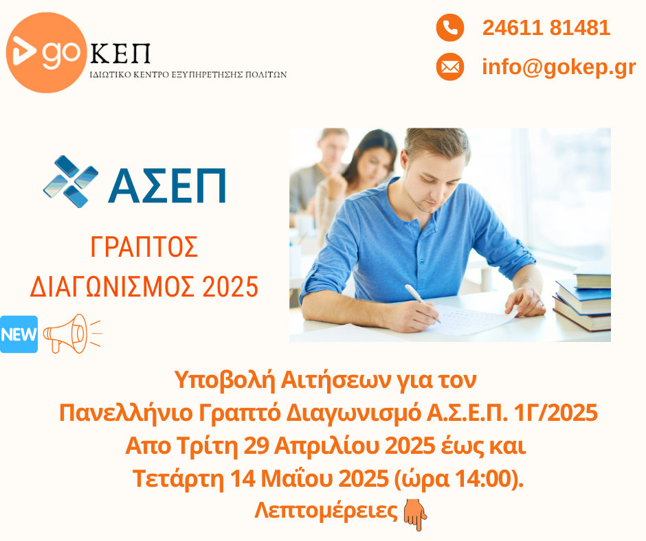 ✅ Συμπλήρωση και ηλεκτρονική υποβολή της αίτησης μέσω του www.asep.gr