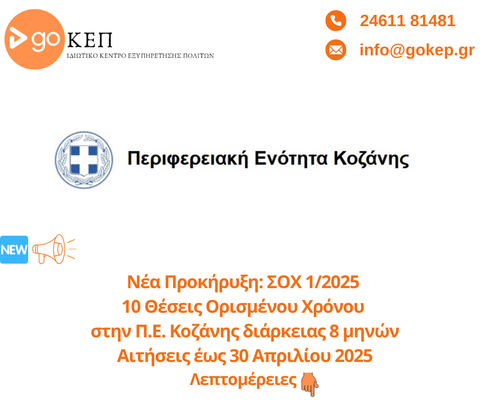 Νέα Προκήρυξη: 10 Θέσεις Ορισμένου Χρόνου στην Π.Ε. Κοζάνης – Κάντε την Αίτησή σας με την Υποστήριξη του GoΚΕΠ