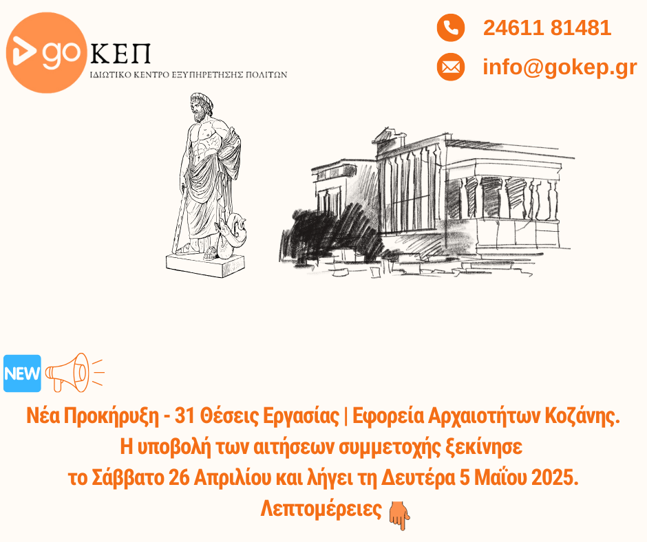 Νέα Προκήρυξη 31 Θέσεων από την Εφορεία Αρχαιοτήτων Κοζάνης – GoΚΕΠ