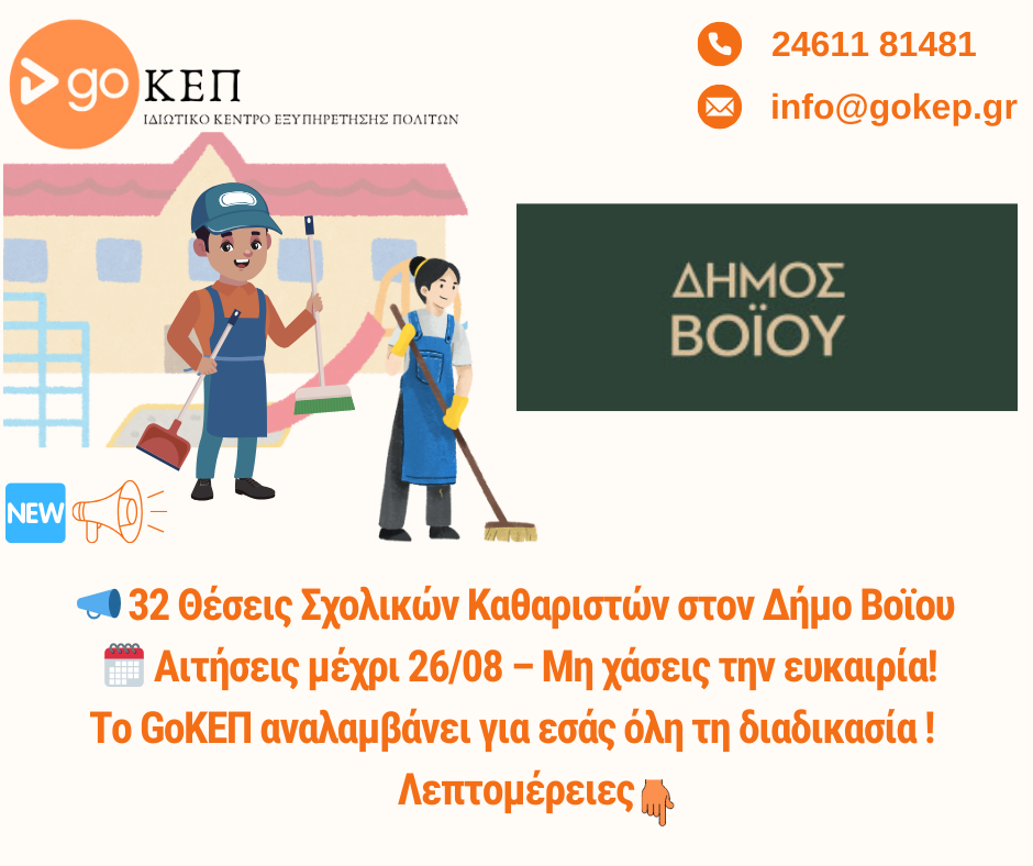 Υποβολή αιτήσεων για 32 θέσεις καθαριστών στον Δήμο Βοΐου – GoΚΕΠ