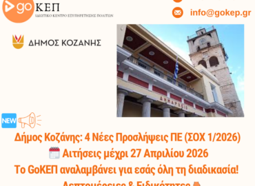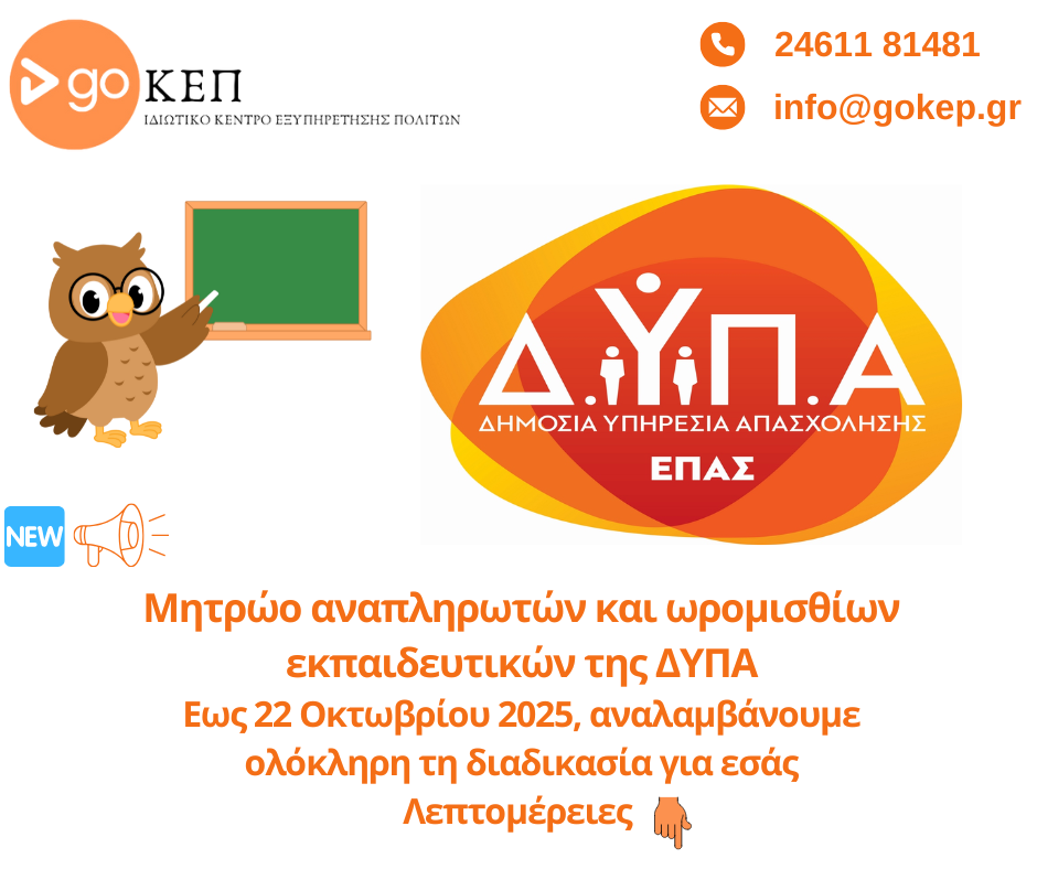 Το GoΚΕΠ, το ιδιωτικό Κέντρο Εξυπηρέτησης Πολιτών στην Κοζάνη, αναλαμβάνει πλήρως τη διαδικασία κατάθεσης στο Μητρώο Αναπληρωτών της ΔΥΠΑ.
