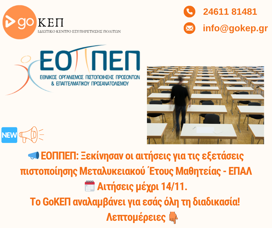 📢 Αιτήσεις ΕΟΠΠΕΠ 2025 – Αναλαμβάνουμε όλη τη διαδικασία στο GoΚΕΠ!