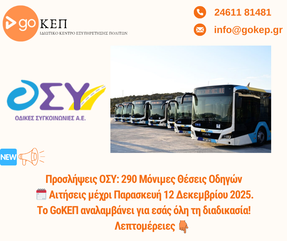 🚌 Προσλήψεις ΟΣΥ: 290 Μόνιμες Θέσεις Οδηγών – Οδηγός Αίτησης από το GoΚΕΠ