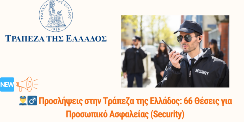 👮♂️ Προσλήψεις στην Τράπεζα της Ελλάδος: 66 Θέσεις για Προσωπικό Ασφαλείας (Security) Μια εξαιρετική ευκαιρία επαγγελματικής αποκατάστασης ανακοινώθηκε πρόσφατα από […]