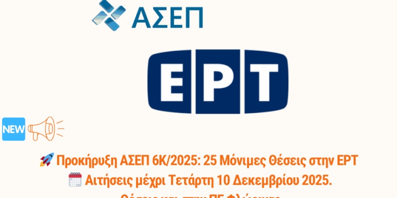 Ψάχνεις για σιγουριά και επαγγελματική αποκατάσταση; Το ΑΣΕΠ μόλις «άνοιξε» την πόρτα για 25 Μόνιμες Θέσεις στην Ελληνική Ραδιοφωνία Τηλεόραση […]