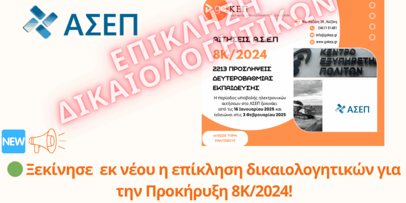 Ξεκίνησε η επίκληση δικαιολογητικών για την Προκήρυξη ΑΣΕΠ 1Κ/2025!